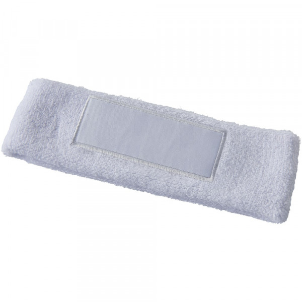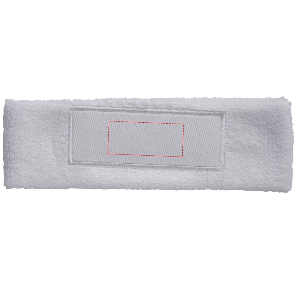 Zachte en absorberende elastische katoenen hoofdband met rechthoekige 90x30mm patch voor het plaatsen van een logo.