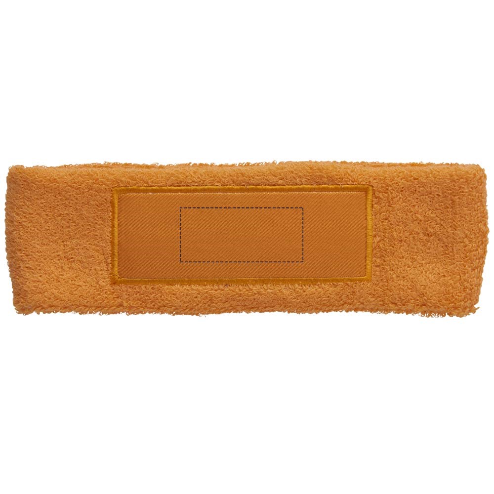Zachte en absorberende elastische katoenen hoofdband met rechthoekige 90x30mm patch voor het plaatsen van een logo.