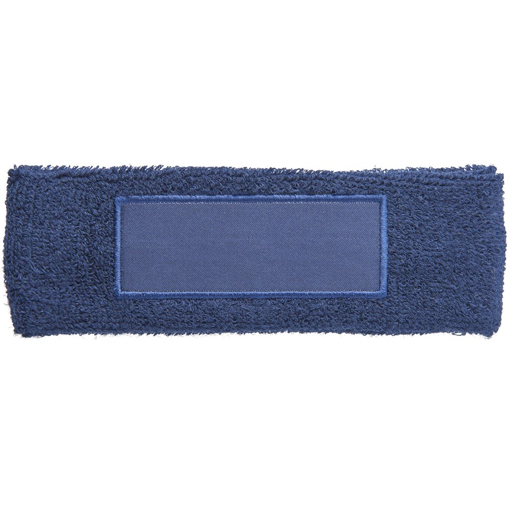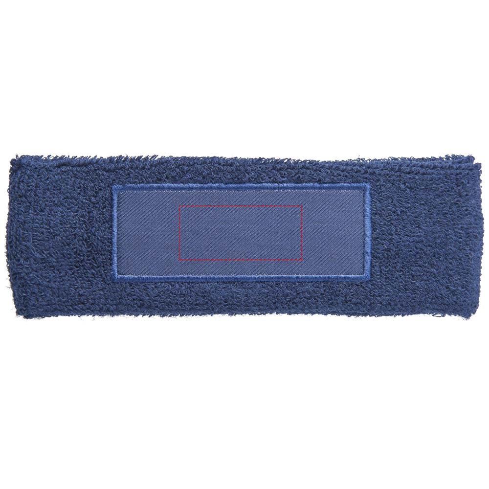 Zachte en absorberende elastische katoenen hoofdband met rechthoekige 90x30mm patch voor het plaatsen van een logo.