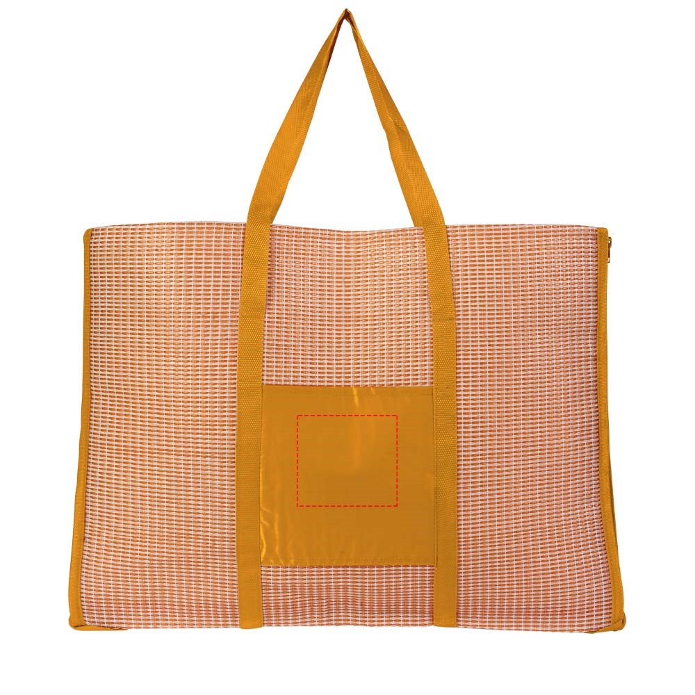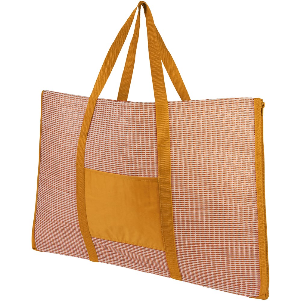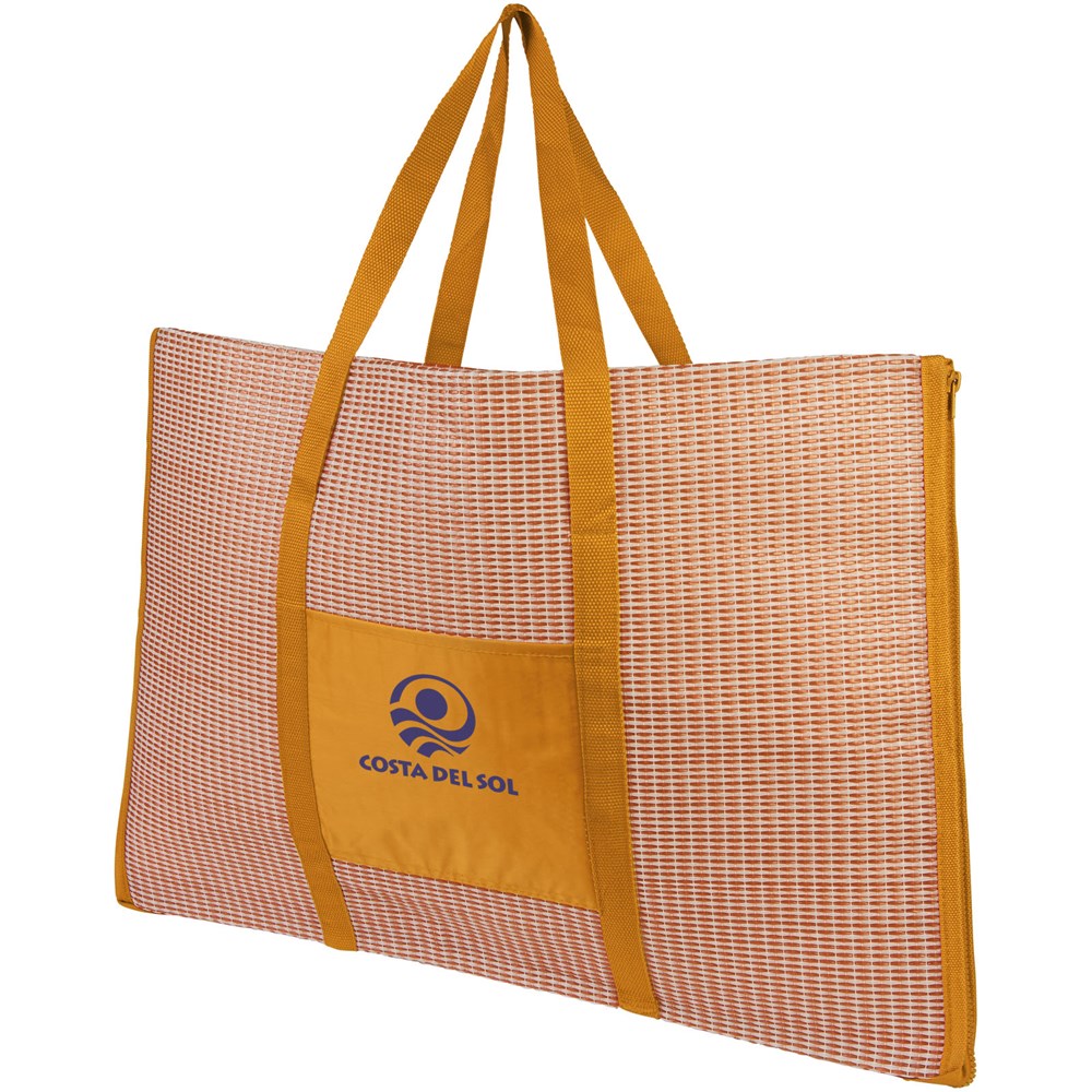2-in-1 opvouwbare strandmat in een handige schoudertas van 60 x 44 cm. Inclusief zakje en opblaasbaar kussen. Lengte hengsel 28 cm.