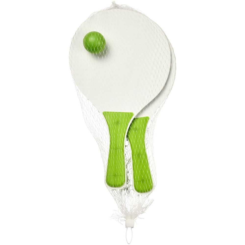 Altijd plezier met deze strandspelset die in de meest diverse kleuren wordt aangeboden. Deze duurzame strandspelset is gemaakt van MDF-hout met gekleurde PP handgreep. Verpakt samen met een zachte bal in een soortgelijke kleur in een netverpakking, waardoor het gemakkelijk is om mee te nemen op een leuke dag naar het strand.