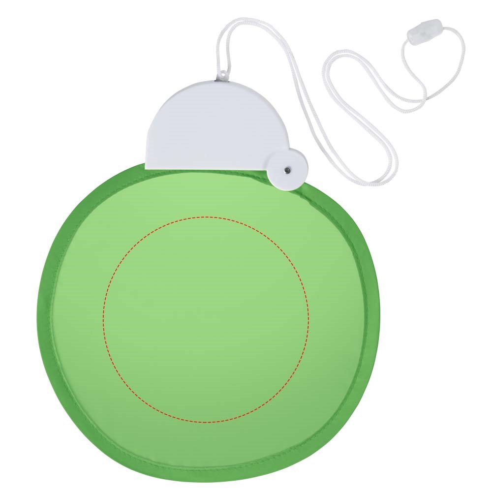 Flexibele nylon ventilator die je terugvouwt in de plastic behuizing. Inclusief nekkoord.