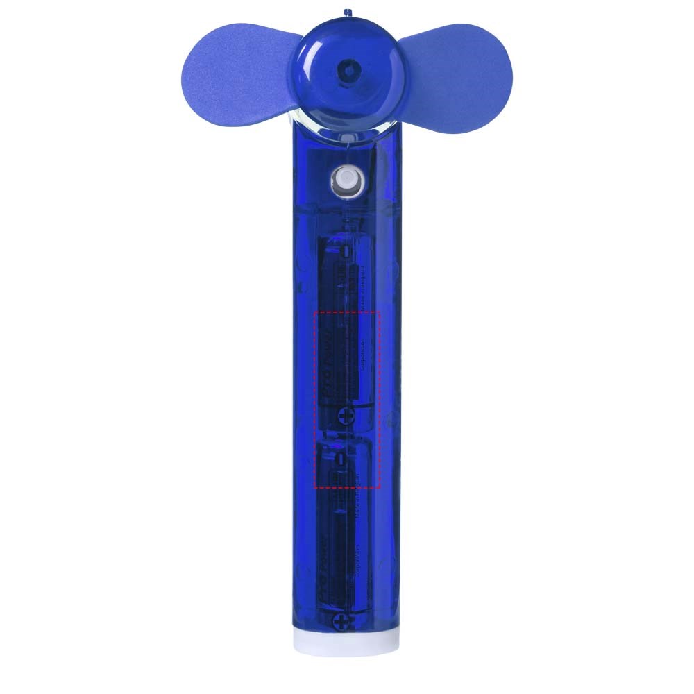 Zakventilator met kleine watercontainer en spray voor extra verkoeling. 2x AA batterijen inbegrepen.
