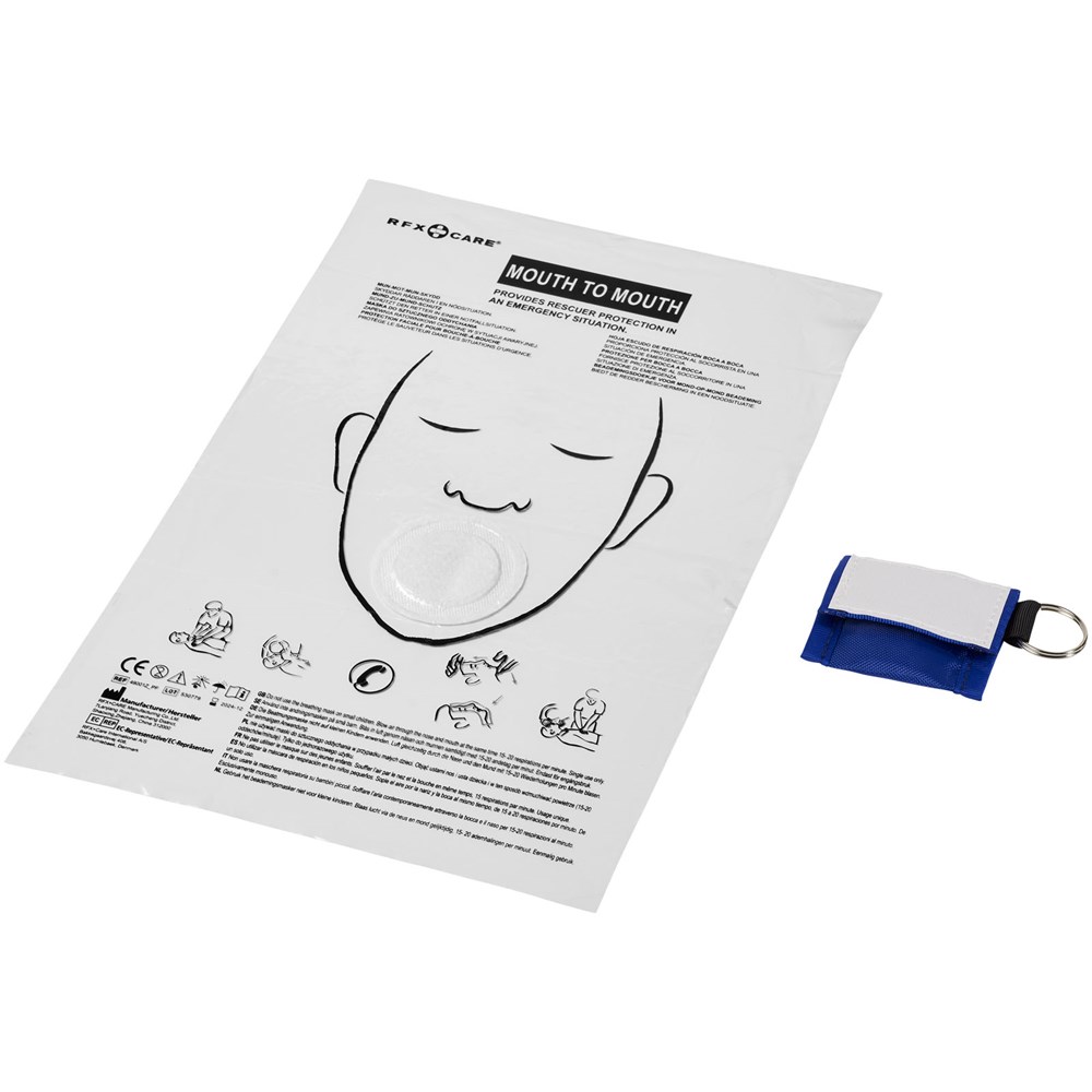 Een must-have item voor al het personeel dat is opgeleid voor CPR, ontworpen om mond-op-mondreanimatie veilig te maken voor zowel de patiënt als de hulpverlener. Klein gevouwen in een polyester etui met sleutelring en een groot decoratievlak. Voorkomt direct contact met de mond, de neus en het gezicht van zowel de hulpverlener als de patiënt. Bestand tegen water en speeksel, waardoor de lucht kan ventileren. Geschikt voor zowel volwassenen als kinderen. Het mond-op-mondschild is gereguleerd, getest en gecertificeerd als Medisch Hulpmiddel van Klasse I in overeenstemming met de Richtlijn Medische Hulpmiddelen MDD 93/42/EEG van 14 juni 1993.