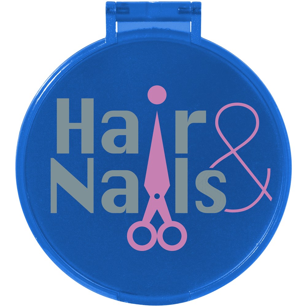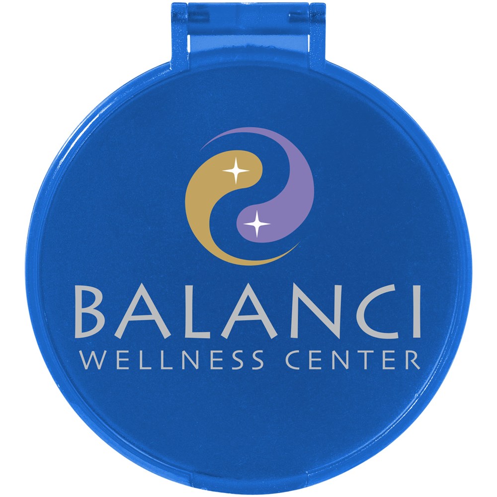 Spiegel met klepje dat tevens dienst doet als standaard.