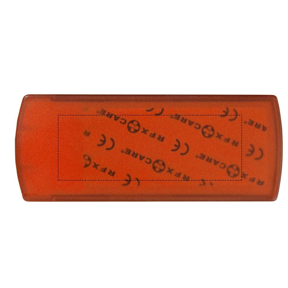 Draagbare minibox met 5 plakpleisters van 56x19 mm, bedoeld voor gebruik op kleine snij- en schaafwonden. De pleisterbox heeft een groot decoratievlak. De plakpleisters zijn gereguleerd, getest en gecertificeerd als Medische Hulpmiddelen van Klasse I in overeenstemming met de Richtlijn Medische Hulpmiddelen MDD 93/42/EEG van 14 juni 1993.