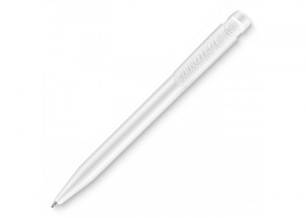 Pennen kunnen grote boosdoeners zijn in het verspreiden van bacteriën. Deze pen is gecertificeerd volgens de ISO 22196 normering. Het is de promotionele pen voor bedrijven in de medische wereld en ook zeer geschikt voor bijvoorbeeld scholen, horeca en publieke instellingen. Deze IProtect pen komt met een witte barrel en een gekleurde clip. Bevat een X20 vulling met blauw schrijvende inkt. De pen heeft een drukmechaniek en is gemaakt van ABS kunststof met zink-ionen. Geproduceerd in Europa.