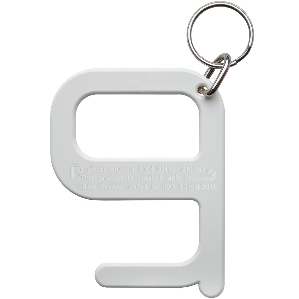 Een eenvoudig maar effectief hygiëne-item dat de gebruiker in staat stelt om deuren en drukknoppen te openen zonder direct contact met de handen. Vervaardigd uit versterkte materialen voor extra duurzaamheid. Dit product bevat Biomaster antimicrobiële technologie die bescherming biedt tegen de groei van schadelijke micro-organismen voor de levensduur van het product. Geleverd als sleutelhanger.