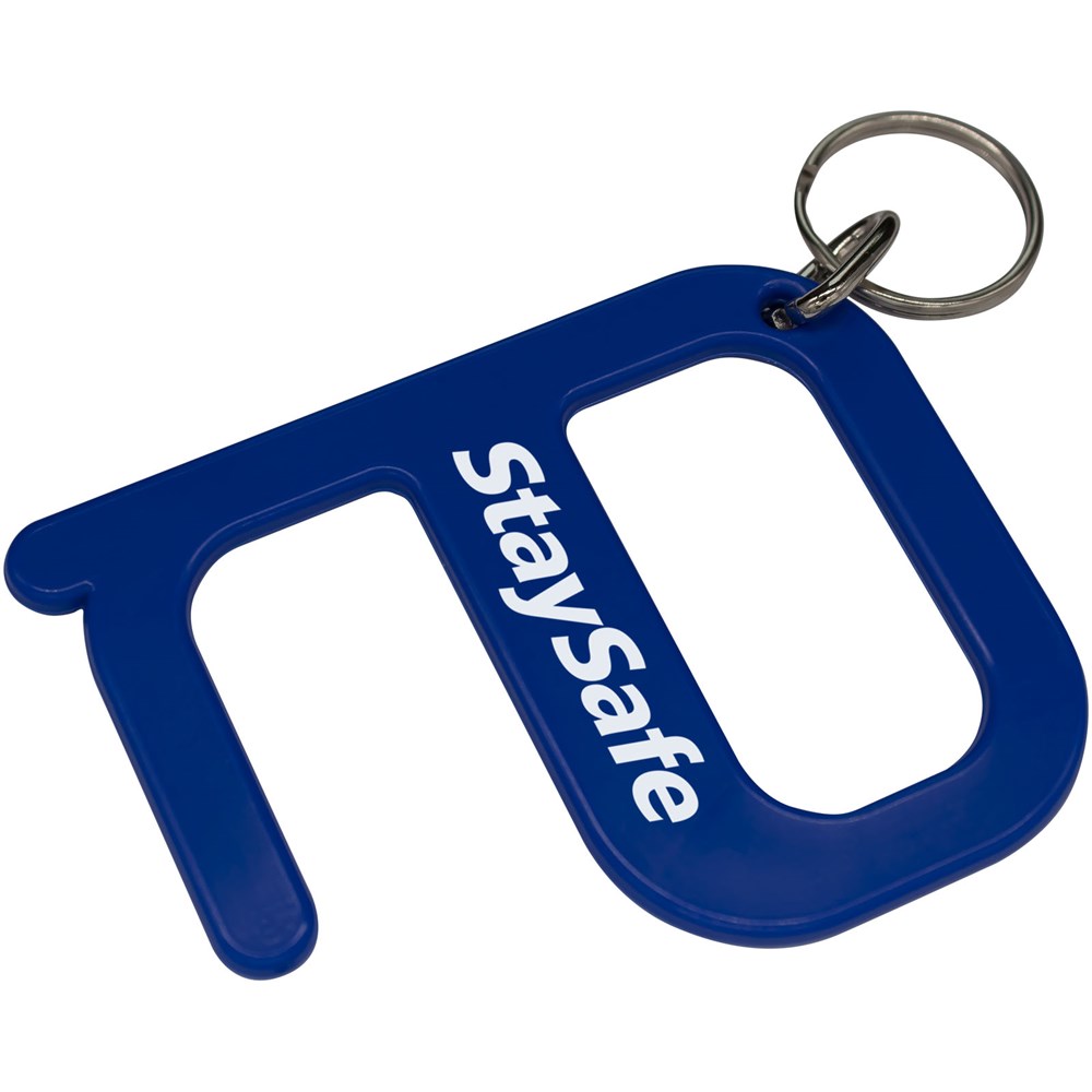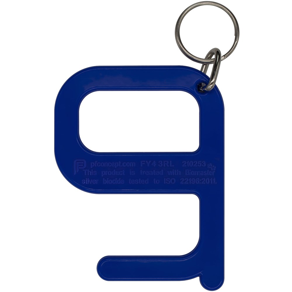 Een eenvoudig maar effectief hygiëne-item dat de gebruiker in staat stelt om deuren en drukknoppen te openen zonder direct contact met de handen. Vervaardigd uit versterkte materialen voor extra duurzaamheid. Dit product bevat Biomaster antimicrobiële technologie die bescherming biedt tegen de groei van schadelijke micro-organismen voor de levensduur van het product. Geleverd als sleutelhanger.