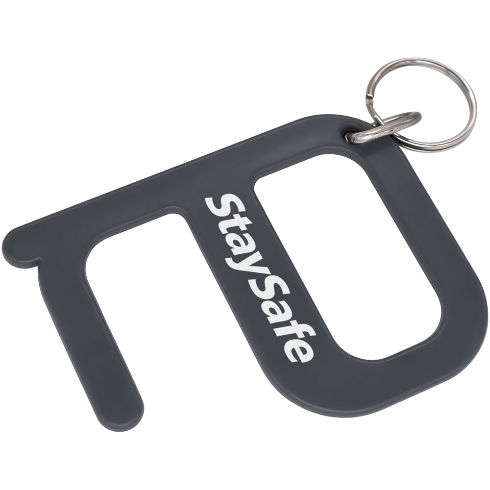 Een eenvoudig maar effectief hygiëne-item dat de gebruiker in staat stelt om deuren en drukknoppen te openen zonder direct contact met de handen. Vervaardigd uit versterkte materialen voor extra duurzaamheid. Dit product bevat Biomaster antimicrobiële technologie die bescherming biedt tegen de groei van schadelijke micro-organismen voor de levensduur van het product. Geleverd als sleutelhanger.