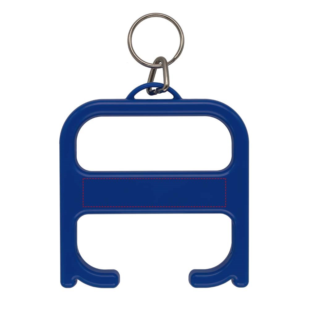 Een robuust hygiëne-item dat de gebruiker in staat stelt om deuren te openen en drukknoppen in te toetsen zonder direct contact. Vervaardigd uit versterkte materialen voor extra duurzaamheid. Dit product bevat Biomaster antimicrobiële technologie die bescherming biedt tegen de groei van schadelijke micro-organismen voor de levensduur van het product. Geleverd met een sleutelhanger.