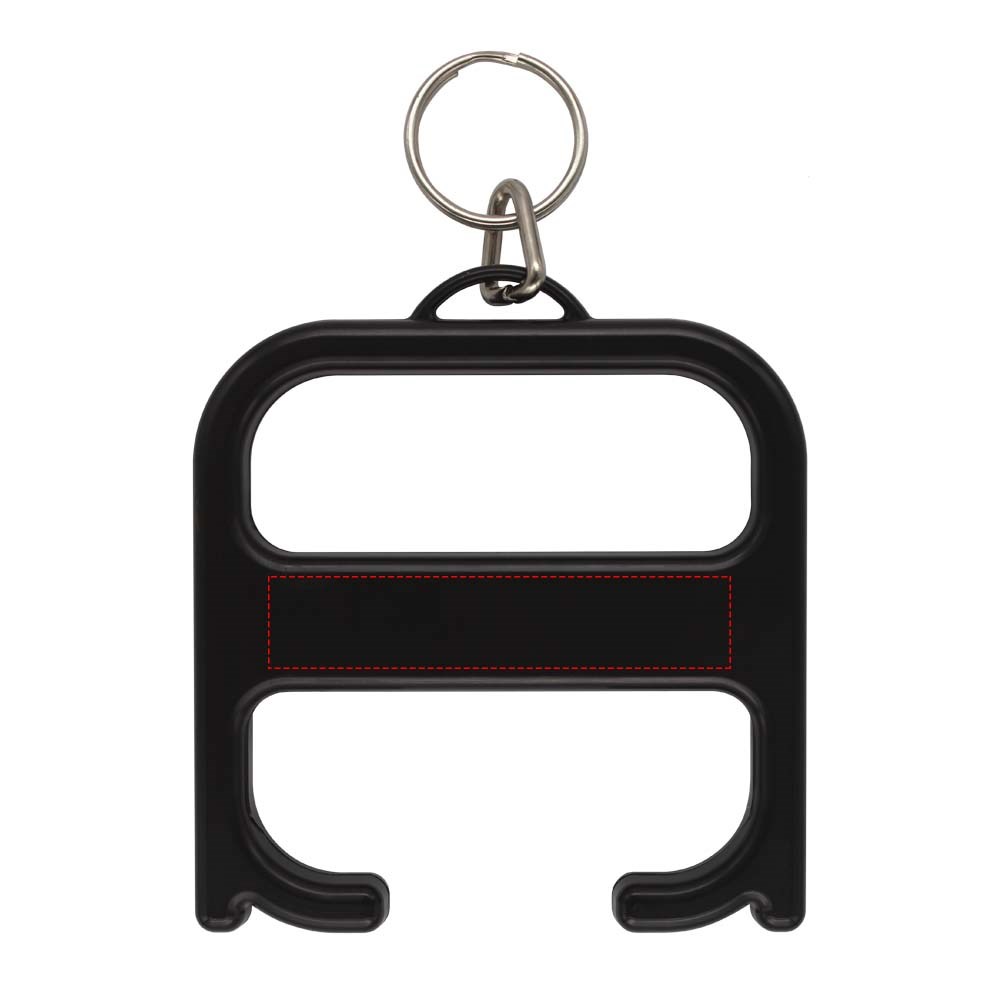 Een robuust hygiëne-item dat de gebruiker in staat stelt om deuren te openen en drukknoppen in te toetsen zonder direct contact. Vervaardigd uit versterkte materialen voor extra duurzaamheid. Dit product bevat Biomaster antimicrobiële technologie die bescherming biedt tegen de groei van schadelijke micro-organismen voor de levensduur van het product. Geleverd met een sleutelhanger.