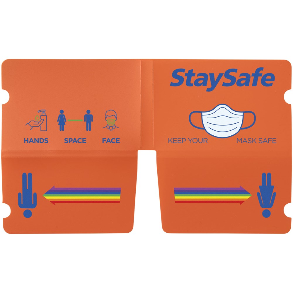 Handige opvouwbare buidel voor het hygiënisch opbergen van mondmaskers wanneer deze niet in gebruik zijn. Plaats het masker eenvoudig over het platte PP-vel, volg de vouwtekens en sluit de buidel veilig met de oorelastiekjes van het masker.