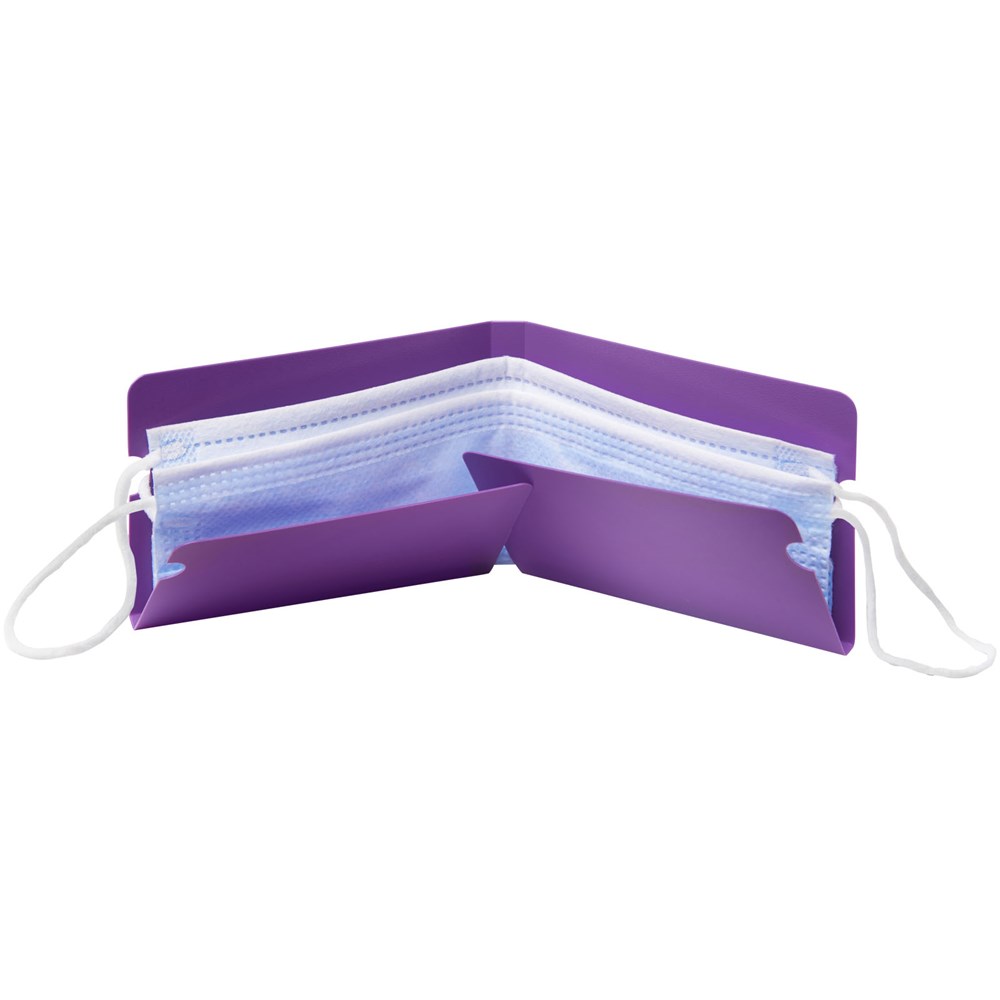 Handige opvouwbare buidel voor het hygiënisch opbergen van mondmaskers wanneer deze niet in gebruik zijn. Plaats het masker eenvoudig over het platte PP-vel, volg de vouwtekens en sluit de buidel veilig met de oorelastiekjes van het masker.