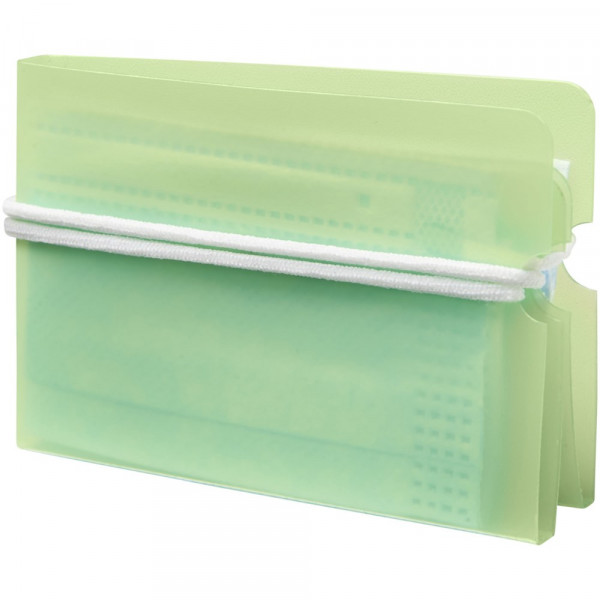Handige opvouwbare buidel voor het hygiënisch opbergen van mondmaskers wanneer deze niet in gebruik zijn. Plaats het masker eenvoudig over het platte PP-vel, volg de vouwtekens en sluit de buidel veilig met de oorelastiekjes van het masker.
