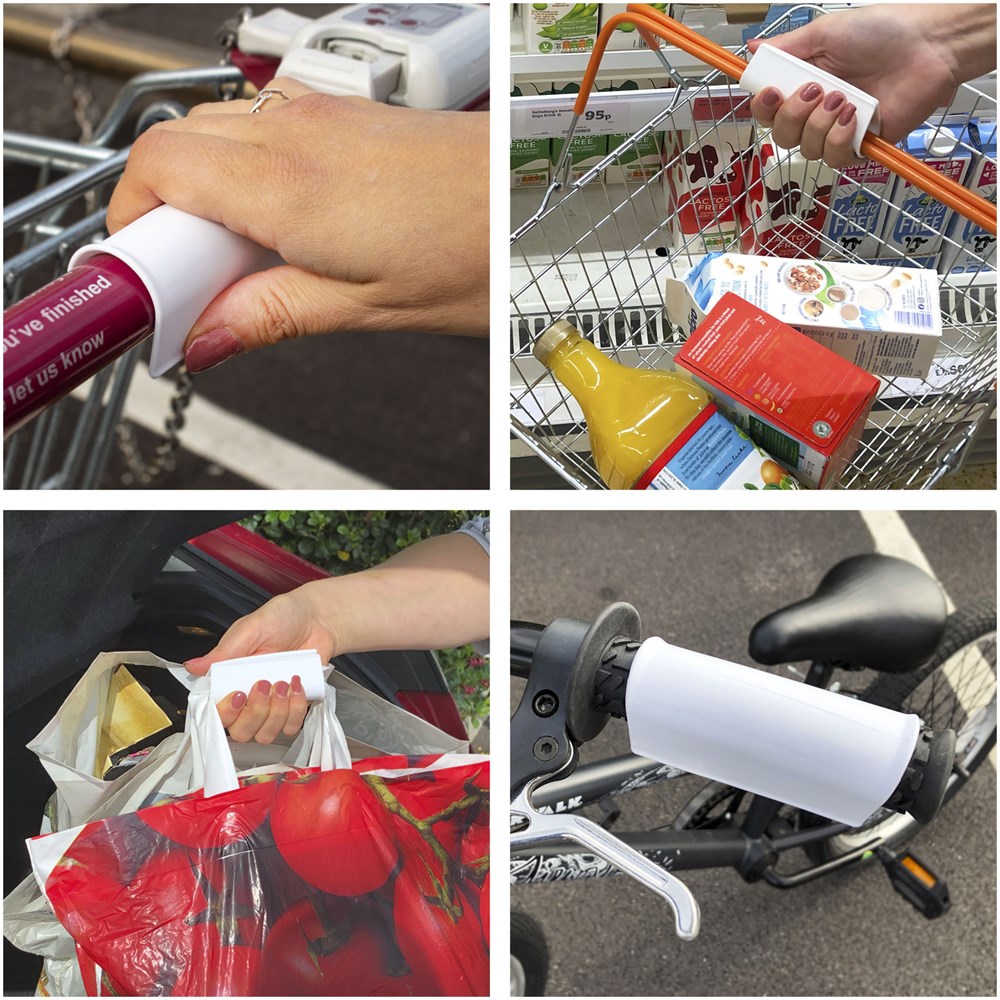 De ideale beschermende metgezel! Geleverd in een pakket met twee stuks. De Handle-Guard past over alle hendels zodat je hem kunt gebruiken zonder direct contact te hebben. Overal bruikbaar: van winkelwagens in de supermarkt tot fitnesstoestellen in de sportschool. Je kunt hem zelfs omdraaien en gebruiken om meerdere boodschappentassen te dragen. Bevat Biomaster anti-microbiële technologie die bescherming biedt tegen de aangroei van schadelijke micro-organismen tijdens de levensduur van het product. Gemaakt in het Verenigd Koninkrijk.