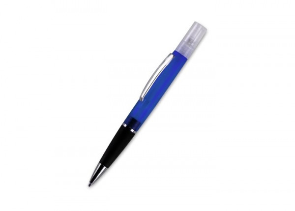 Altijd je handen schoon houden met deze pen voorzien van reinigende handspray (8ml). De pen is beschikbaar in transparante kleuren en heeft aan de bovenzijde een handige reinigende handspray. Hierdoor heb je altijd op kantoor of onderweg de kans om je handen schoon te maken en maken bacteriën geen schijn van kans.