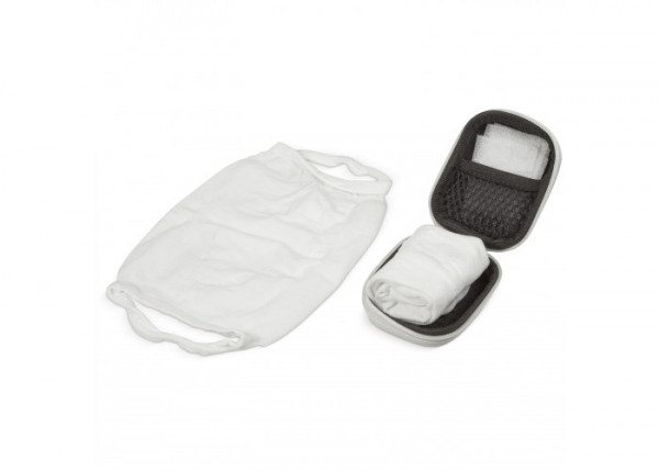 Deze set bevat twee mondmaskers gemaakt van zacht en rekbaar OEKO-TEX® gecertificeerd polyamide en wordt geleverd in een beschermend doosje om te zorgen dat wanneer de mondkapjes gebruikt moeten worden, deze nog niet in aanraking zijn gekomen met eventueel besmette oppervlakken. Met vakje om een eventueel (zelfgemaakt) filter in te kunnen stoppen.