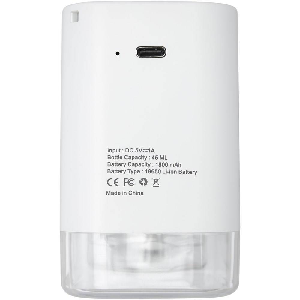 Automatische alcoholspuit om handen te ontsmetten (vloeistof niet inbegrepen), geactiveerd door handen onder de sensor te houden. Op deze manier wordt kruisinfectie vermeden omdat de dispenser niet wordt aangeraakt. De sproeier is klein, draagbaar, waardoor deze handig is voor zowel thuis als op kantoor. De capaciteit van de container is 45 ml. Geleverd in onze nieuwste ontsmettingslijn Avenue geschenkverpakking en Type-C oplaadkabel. OPMERKING: Dit product wordt niet geleverd met ontsmettingsmiddel of alcohol.
