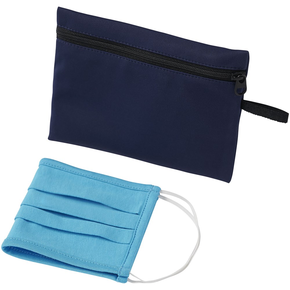 Zakje met ritssluiting voor het veilig en hygiënisch opbergen van mondmaskers. Ideaal om in de auto, handtas of werktas te bewaren, om altijd een mondmasker bij de hand te hebben. Met stoffen lus voor eenvoudige bevestiging aan bijvoorbeeld een sleutelhanger.