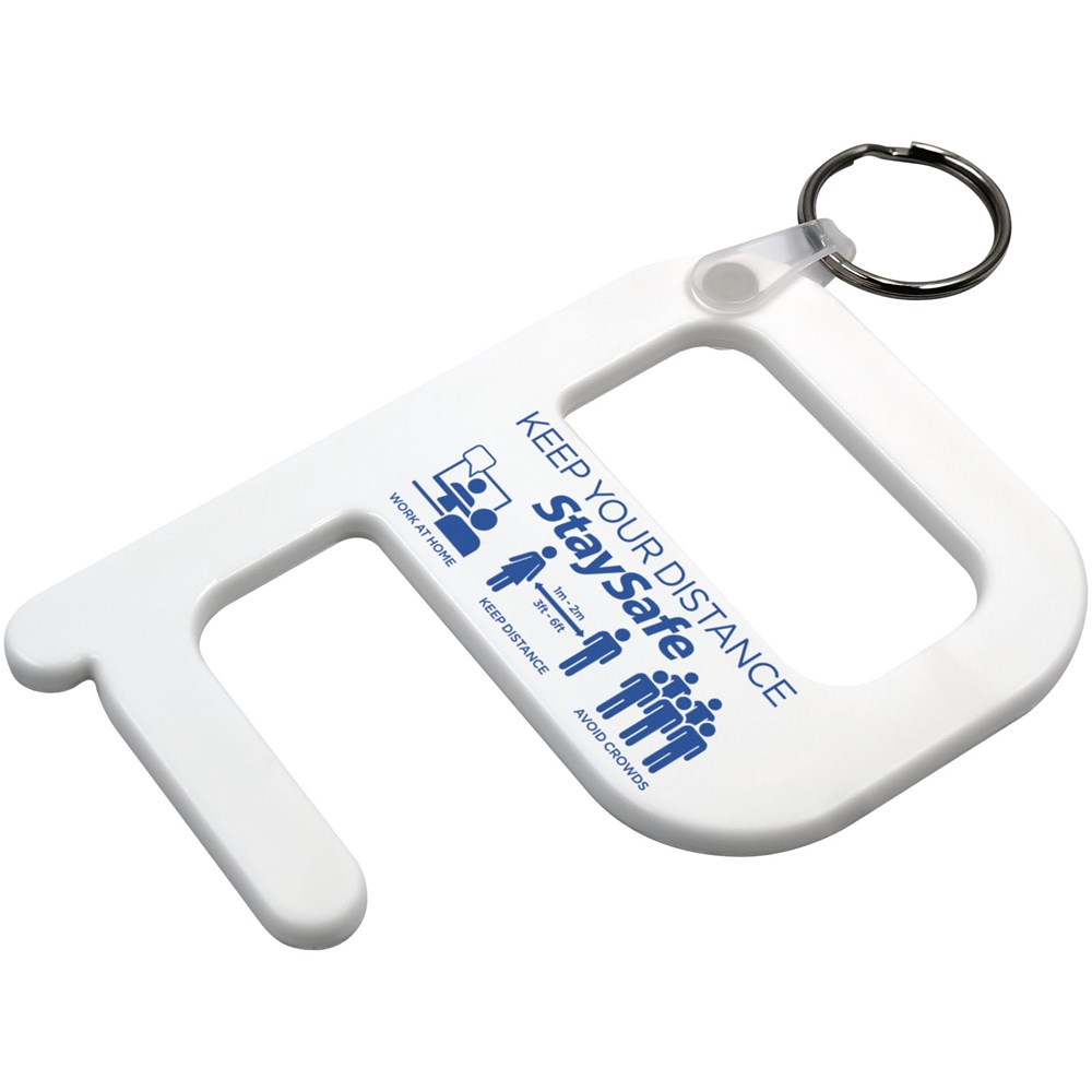 Een grotere versie van de Hygiënesleutel, met meer ruimte voor decoratie. Een eenvoudig maar effectief hygiëne-item dat de gebruiker in staat stelt om deuren en drukknoppen te openen zonder direct contact met de handen. Vervaardigd uit versterkte materialen voor extra duurzaamheid. Dit product bevat Biomaster antimicrobiële technologie die bescherming biedt tegen de groei van schadelijke micro-organismen voor de levensduur van het product. Geleverd als sleutelhanger.