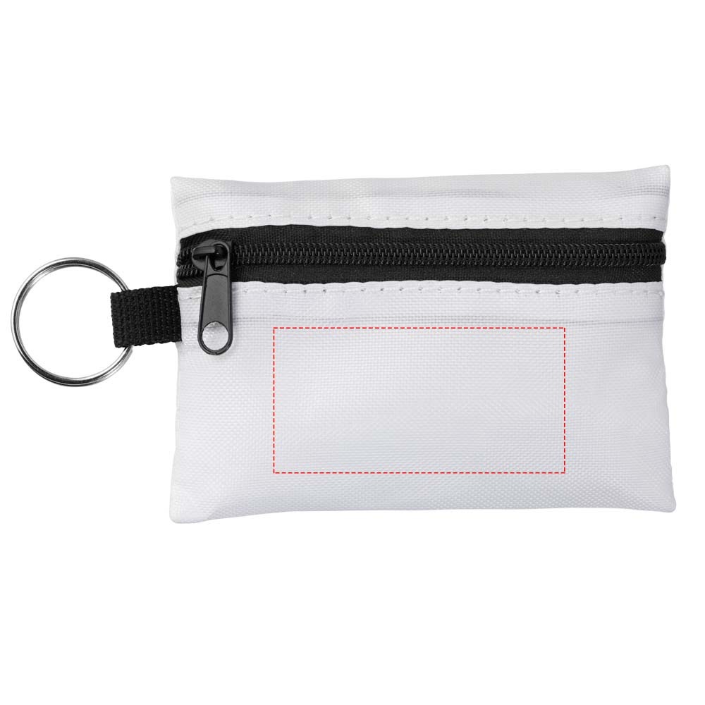 Handig polyester etui met sleutelring met 16 EHBO-benodigdheden. Zeer geschikt voor reizen, festivals, evenementen en andere buitenactiviteiten, en met een groot decoratievlak. Een EHBO-set wordt beschouwd als een medisch hulpmiddel en is onderworpen aan 93/42/EEG, op basis van het beoogde gebruik: "diagnose, preventie, controle, behandeling of verlichting van ziekte". Dit medisch hulpmiddel is van KLASSE I, Is.