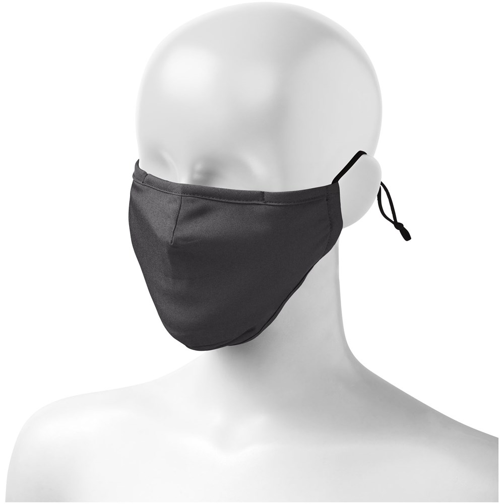 Tweelaags mondmasker Filtervak (filter niet inbegrepen). Metalen neusbrug. Elastische bandjes met verstelbare stop. Ergonomische vorm om mond en kin te beschermen. Wasbaar op 60 graden. Gemaakt van lichtgewicht en comfortabel 94% gecertificeerd gerecycled polyester en 6% elastaan. GRS-certificering garandeert een 100% gecertificeerde toeleveringsketen. Het gebruik van dit masker is uitsluitend voorbehouden voor niet-sanitaire doeleinden. Dit hulpmiddel is geen medisch hulpmiddel in de zin van regelgeving EU/2017/745 (chirurgische maskers) noch valt het onder de persoonlijke beschermingsmiddelen in de zin van Verordening EU/2016/425 (zoals filtermaskers type FFP2 of FFP3). Dit product is niet geschikt voor medisch gebruik en beschermt niet tegen infecties.