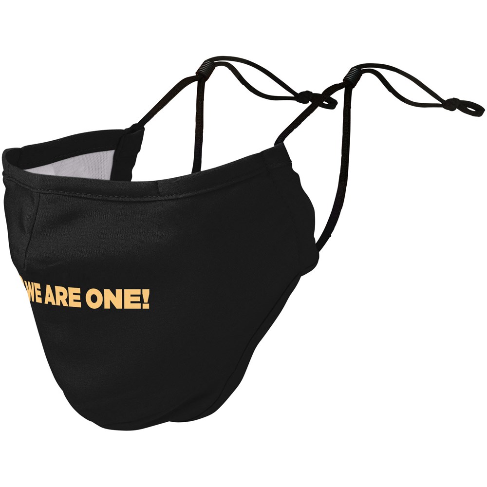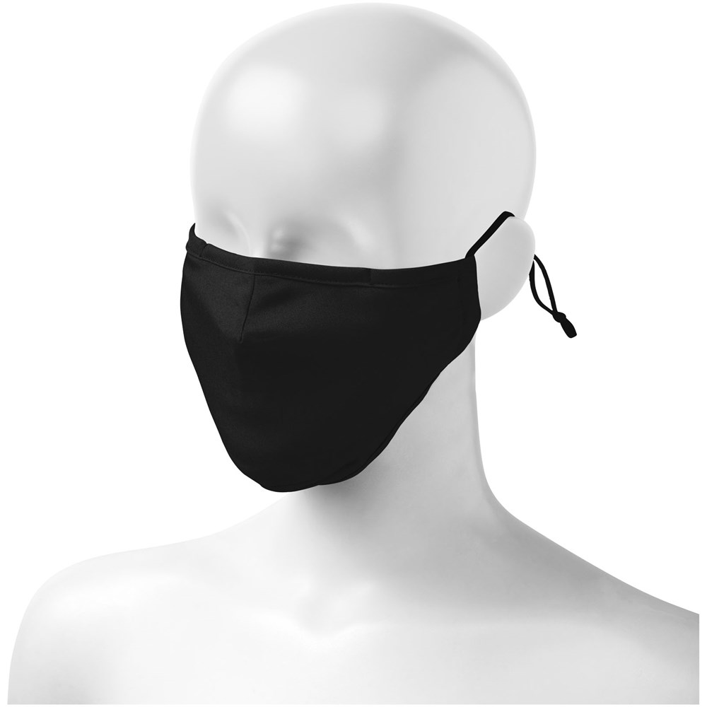 Tweelaags mondmasker Filtervak (filter niet inbegrepen). Metalen neusbrug. Elastische bandjes met verstelbare stop. Ergonomische vorm om mond en kin te beschermen. Wasbaar op 60 graden. Gemaakt van lichtgewicht en comfortabel 94% gecertificeerd gerecycled polyester en 6% elastaan. GRS-certificering garandeert een 100% gecertificeerde toeleveringsketen. Het gebruik van dit masker is uitsluitend voorbehouden voor niet-sanitaire doeleinden. Dit hulpmiddel is geen medisch hulpmiddel in de zin van regelgeving EU/2017/745 (chirurgische maskers) noch valt het onder de persoonlijke beschermingsmiddelen in de zin van Verordening EU/2016/425 (zoals filtermaskers type FFP2 of FFP3). Dit product is niet geschikt voor medisch gebruik en beschermt niet tegen infecties.
